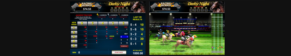 Derby Night is a horse racing arcade game produced by Spadegaming. Put wager on your 2 lucky stars, you might have a chance to win. This game has the Racing Jackpot to be won, who knows? The winner might just be you. Come on down, lets wager away your luckiest night in Derby Night.
