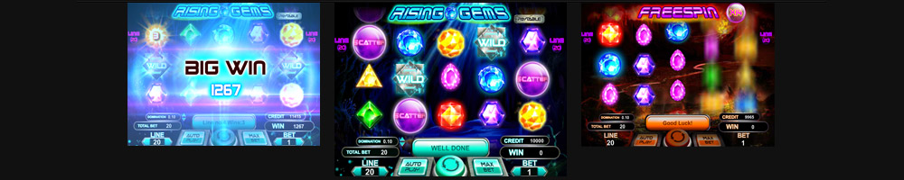 Rising Gems take you to a secret cave, where precious gems and rubies are buried deep down in rocks, waiting to shine .Retrigger-able free spin in the Free Spins mode gives the player higher possible chance of winning. This game has vivid graphics and cool effects on the gems and rubies, that is going to light up your day.